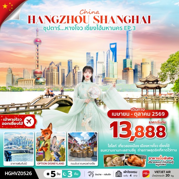 ทัวร์เซี่ยงไฮ้ เดินทางเดือน เม.ย. - ต.ค. 69