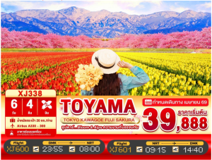 จากนั้นนำท่านสู่ จังหวัดโทยามะ (Toyama) เป็นจังหวัดที่เลียบชายฝั่งทะเลญี่ปุ่น อยู่ในภูมิภาคชุบุ ครอบคลุม-พื้นที่ทางทิศเหนือของภูเขาแอลป์ญี่ปุ่น ทำให้มีแหล่งท่องเที่ยวที่หลากหลาย ยิ่งไปกว่านั้น เมืองโทยามะ (Toyama City) ที่เป็นเมืองหลักของ ‘จังหวัดโทยามะ’ ก็เป็นที่รู้จักกันดีในฐานะของเมืองปราสาทที่สวยงามและจุดศูนย์กลางทางการแพทย์ของญี่ปุ่นด้วย