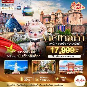07.15 น. ออกเดินทางสู่เมืองดานัง โดยเที่ยวบิน FD 634 (ไม่รวมค่าอาหาร+เครื่องดื่มบนเครื่องขาไป-กลับ)