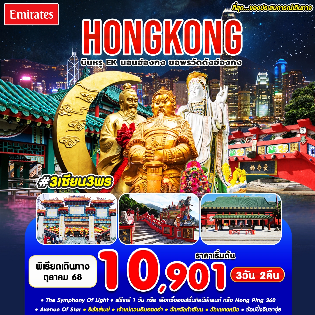 โปรโมชั่น >> ทัวร์ฮ่องกง 3 เซียนเดินทางเดือน ต.ค. - ธ.ค. 68