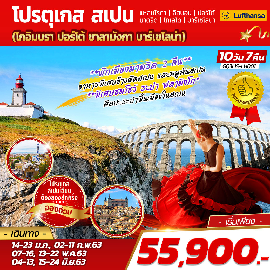 โปรตุเกส สเปน Emirates (EK)เดินทางเดือน พ.ย. 68 - พ.ค. 69