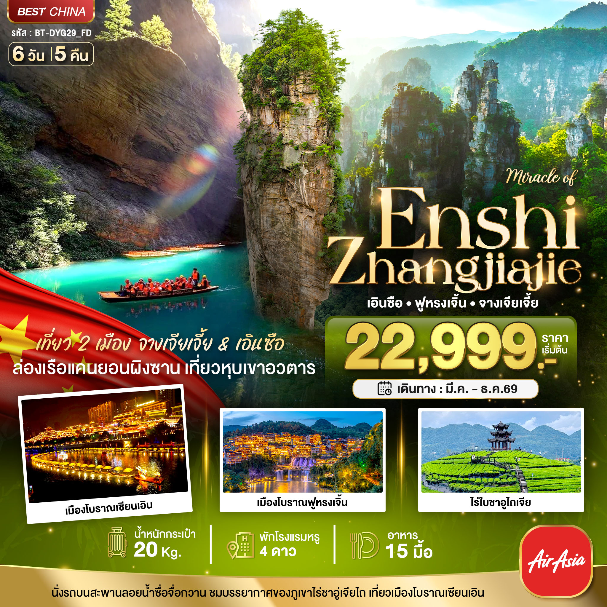 จางเจียเจี้ย ฟูหรงเจิ้น เอินซือ 6 วัน 5 คืนเดินทางเดือน มี.ค. - ธ.ค. 69
