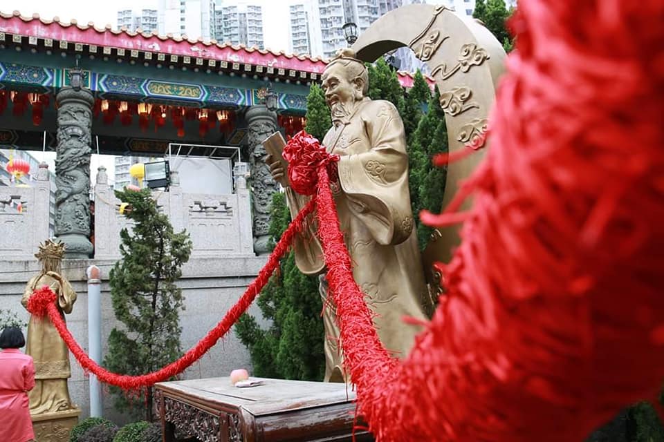 ขอพรให้โชคดี ปลอดภัย ราบรื่นตลอดทั้งปี (มีค่าเข้าประมาณ 100 HKD สามารถสอบถามได้กับหัวหน้าทัวร์หรือไกด์ท้องถิ่น)“วิธีการอธิษฐานขอคู่ ขั้นแรกก็ทำนิ้วตามแบบในรูปเลยเอานิ้วโป้งกดปลายนิ้วนาง แล้วเอานิ้วก้อยสอดเข้าไปในรูของนิ้วนางทั้ง 2 ข้าง ค่อยๆ ทำ ใจเย็นๆ ไม่ยากเกินไปแน่นอน ดูจากภาพไม่ต้องตกใจว่าจะทำได้มั้ย