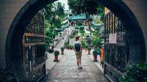 นำท่านเดินทางสู่ วัดหลินฟ้า (Lin Fa Kung Temple) หรือ วัดดอกบัว ขึ้นชื่อเรื่องการเสี่ยงโชค พลิกดวงให้เฮงๆ รวยๆ ได้โชคลาภก้อนโต ตั้งอยู่ที่ย่านหว่านจ๋าย ทางทิศตะวันออกเฉียงเหนือของคอสเวย์ เบย์ โดยวัดนี้ถูกสร้างในช่วงราชวงศ์ชิง หรือ ปี ค.ศ. 1963 มีตำนานเล่าว่าเจ้าแม่กวนอิมเคยมาปรากฏตัวที่วัดแห่งนี้ ทำให้ชาวบ้านเลื่อมใสศรัทธา ร่วมใจกันสร้างวิหารดอกบัว และประดับด้วยโคมดอกบัว เพื่อเป็นการบูชาและสักการะ และยังมี เทพเจ้าฮ่าวจื่อเอี๊ยะ หรือ เทพเจ้าสายนรก เป็นเทพเจ้าที่ขึ้นชื่อเรื่องกตัญญูที่มาในรูปลักษณ์การนุ่งห่มผ้าดิบ ซึ่งคนไทยไม่ค่อยรู้จัก แต่เทพเจ้าสายนี้เปี่ยมไปด้วยพลังหยิน ซึ่งเป็นพลังที่ขึ้นชื่อด้านเงินๆ ทองๆ จึงเหมาะกับผู้ที่ชอบเดิมพัน เล่นเสี่ยงโชค